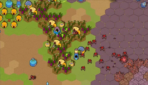 我一直很喜欢那种能直接或间接操控小生物的策略游戏,所以很快就加入了Sproutlings的雏形,作为绿色的小工人。科幻沙漠的世界观也是由此而来——我觉得“将荒芜的星球改造成绿色家园”是一个很有吸引力的游戏目标。