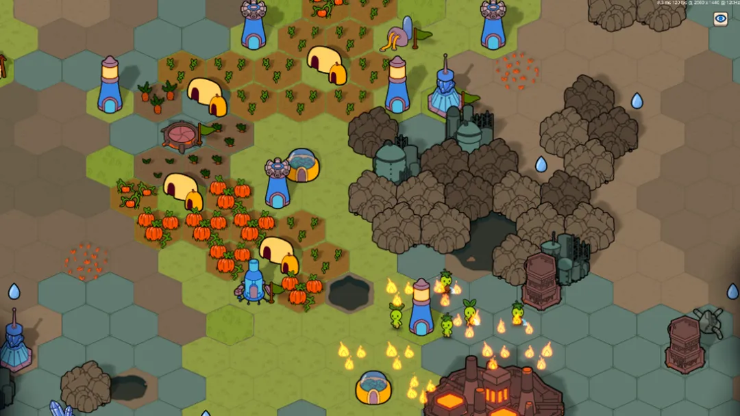 A: 不同关卡有各自的目标,但简化后的核心循环大致如下:用水种植农作物,从农作物中获取资源,建造住所来扩充人口。当人口足够支撑扩张时,你可以建造前哨站、探索隐藏区域、获取更多水和其他资源,进而开发更多农场。经济稳定之后,便可以解锁科技升级,提高生产效率,并保护定居点免受机器人袭击和其他威胁。此外,游戏还设有永久升级系统,解锁的内容可以在所有关卡中通用。