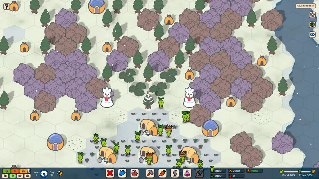 我一直想让游戏呈现出一种略带冥想色彩的“心流”体验:玩家可以静下心来建造农场、种植作物,偶尔驱赶威胁定居点的机器人。但在只有占位音乐、几乎没有音效的阶段,总感觉少了什么。Tobi加入之后,他那轻柔、空灵又温暖的音乐配合Sproutlings浇水、修剪植物时的实际音效,整个游戏体验提升了一大截。