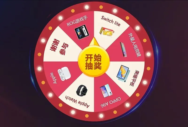 转盘式抽奖,奖品以每个抽奖转盘显示的为准,获奖奖品以指针停留区域所显示的为准;