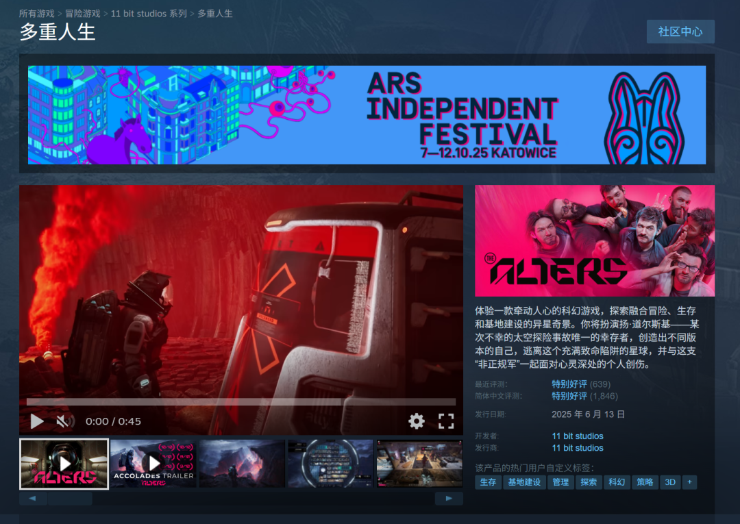 《多重人生》是由11 bit studios开发的科幻生存游戏,这家工作室曾创作出《这是我的战争》等深刻作品。