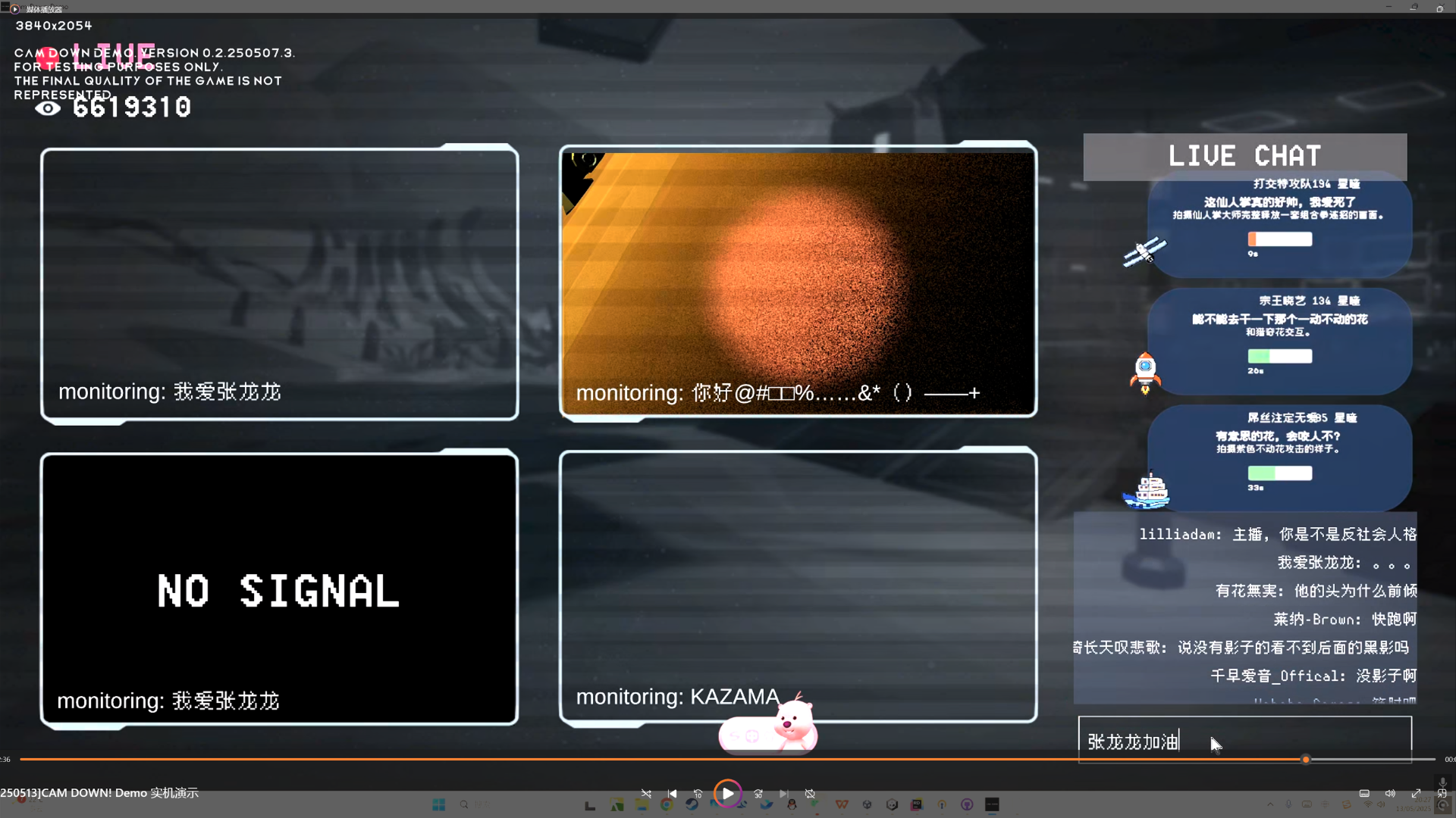 所以在《CAM DOWN!》里我们也做了类似设计:每个玩家其实都在做一场实时直播,一旦有人阵亡,他的画面会立刻黑掉,就像一个频道被突然掐断,只剩下其他人的画面还在继续。