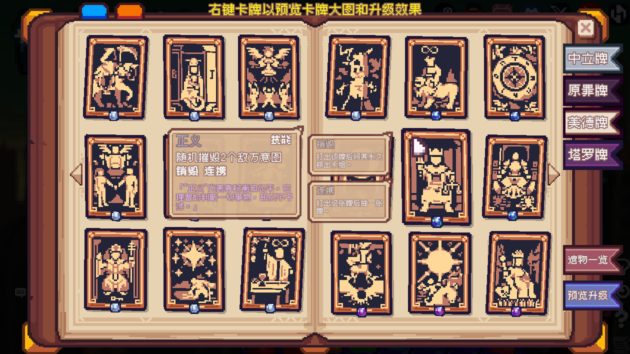 Q:游戏中原罪卡、美德卡、塔罗牌的设计理念分别是什么?玩家在实战中如何合理运用这些特殊卡牌?